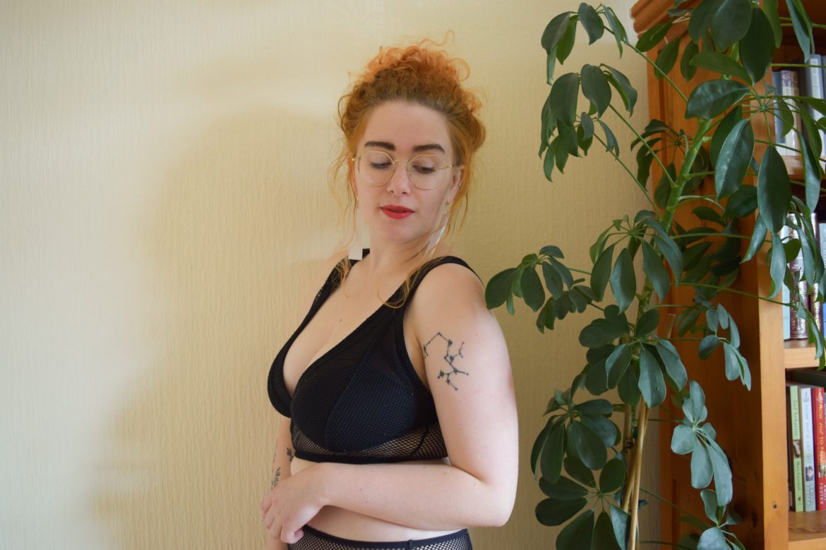 I think I wear this set, or certainly the bralette, at least twice a week. As a self-employed person who does most of her work from home, I get to live most of my life in dungarees and baggy tops, minimising how often I feel the need to wear underwires. This set is incredibly comfortable, and I love how it manages that while looking quite constructed, with it’s strappy style and fishnet material.