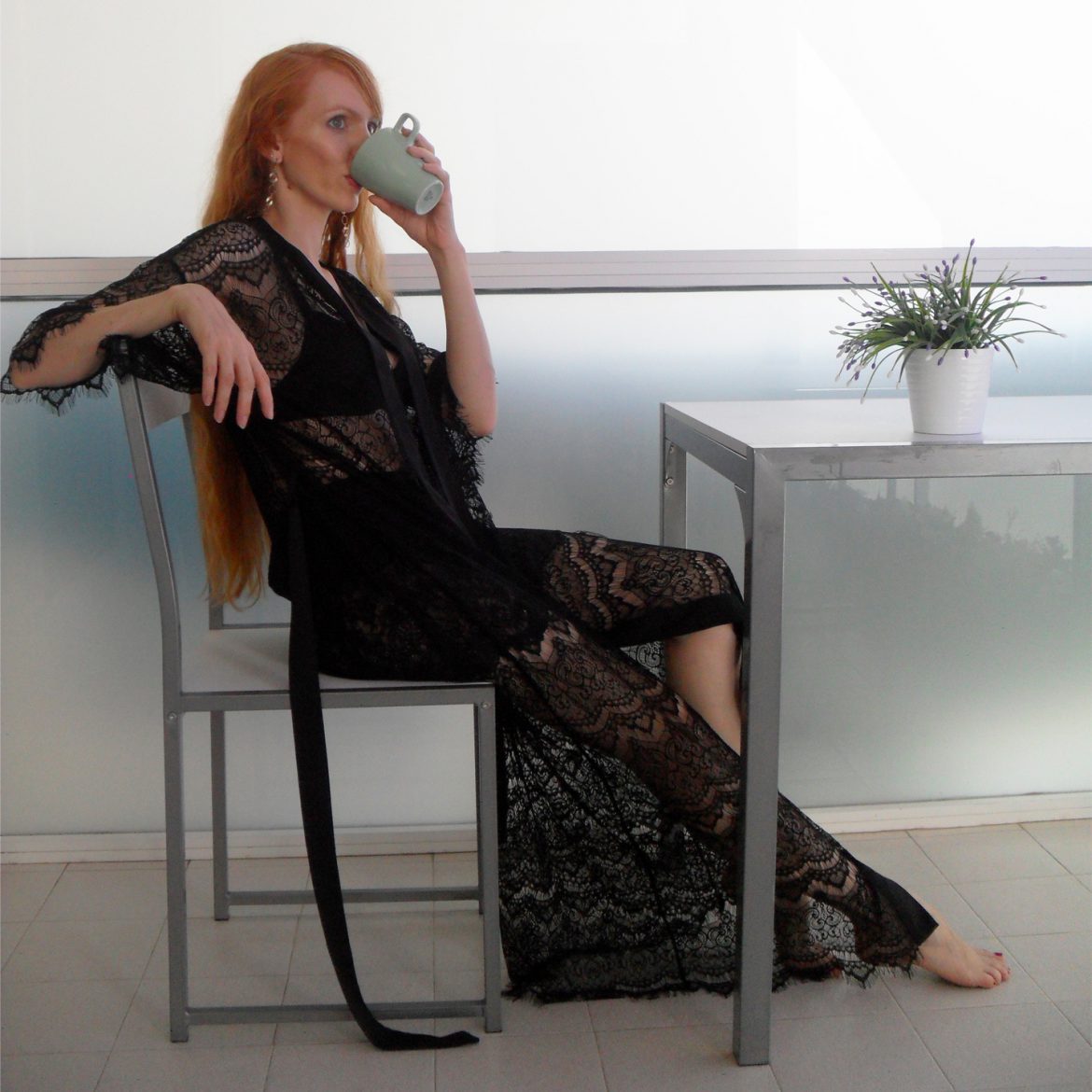 One of the things I wanted for years and yet somehow never got round to buying myself was a full-length robe in sheer lace. They just always catch my eye. Whether it’s over bare skin or a slip in a contrasting colour, few pieces of lingerie can show off lace like a long robe can. And you know that I’m a lace fiend!